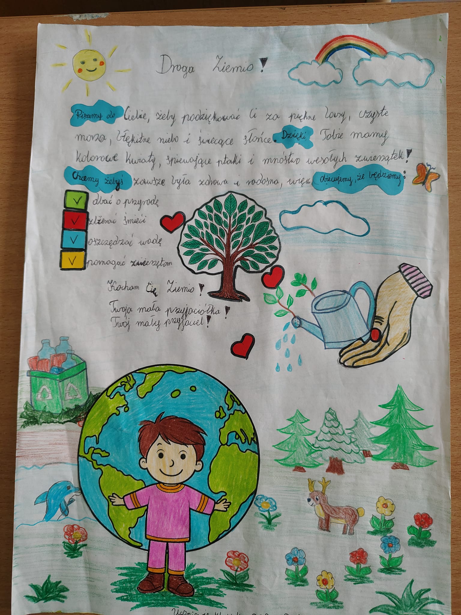 Nasza szkoła wzięła udział w ogólnopolskim projekcie edukacyjnym Listy do Ziemi. Dzieci z klas czwartych i piątych napisały listy do naszej planety, dzieląc się swoimi myślami, radościami i obawami o stan środowiska. Listami wymieniliśmy się z naszą szkołą partnerską- Publiczną Szkołą Podstawową w Pliskowoli. Projekt realizujemy z okazji zbliżającego się Dnia Ziemi. Brawo dla wszystkich za zaangażowanie i kreatywność.